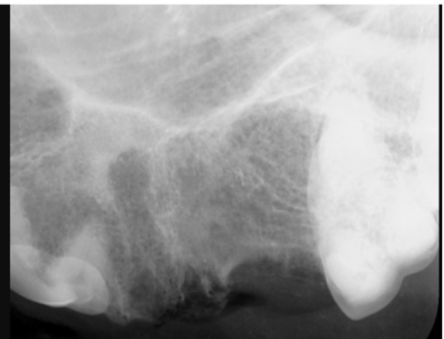 Check out this pre-operative X-ray below, taken before any surgery was done. This X-ray shows the owner that teeth must be extracted and a splint applied.